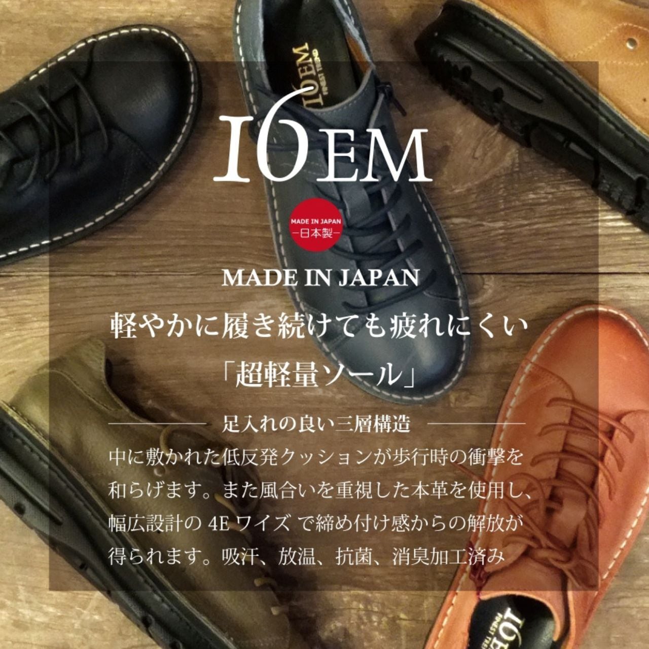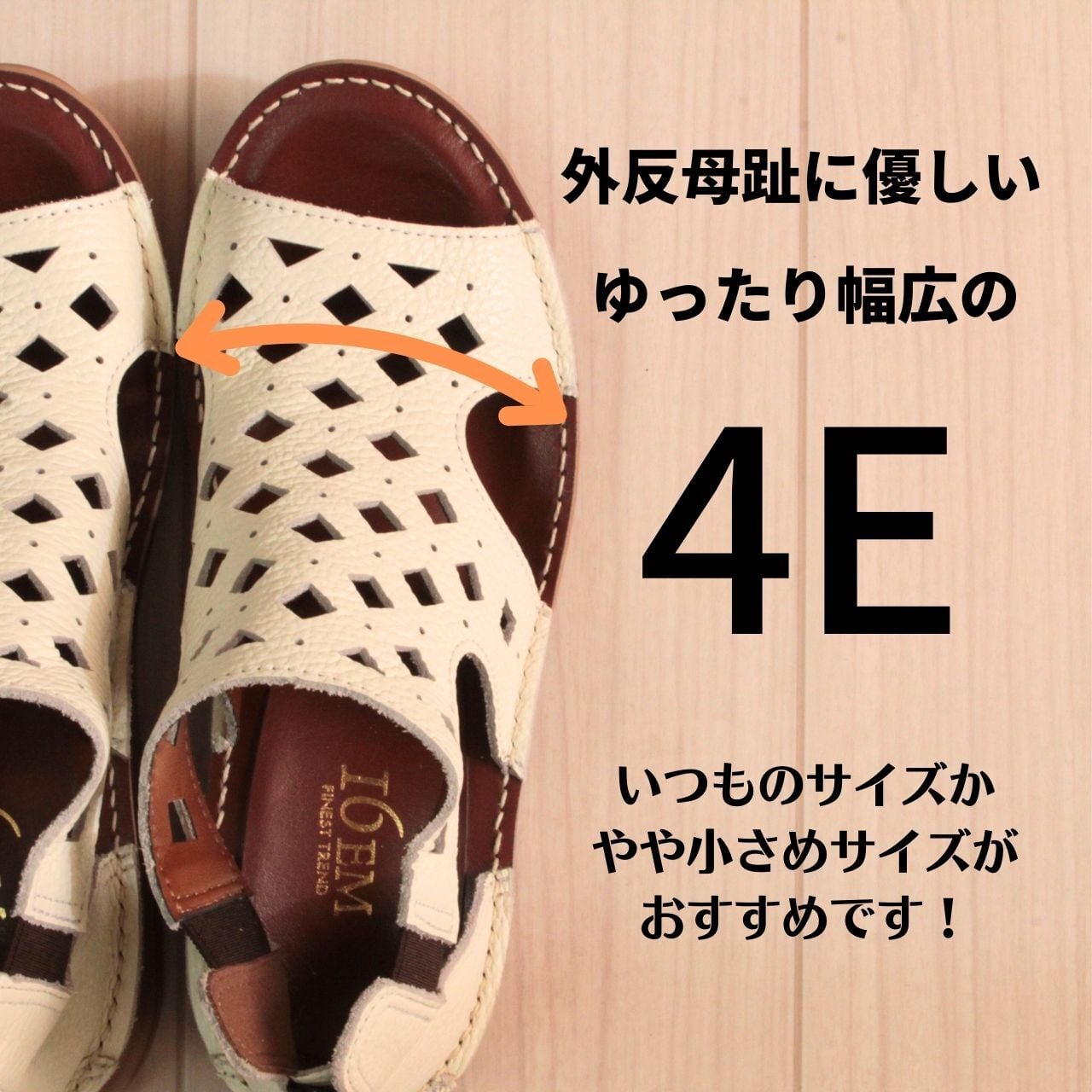 ワイズは幅広の4Eで甲周りの窮屈さを感じさせず、長時間の歩行での疲労も軽減。