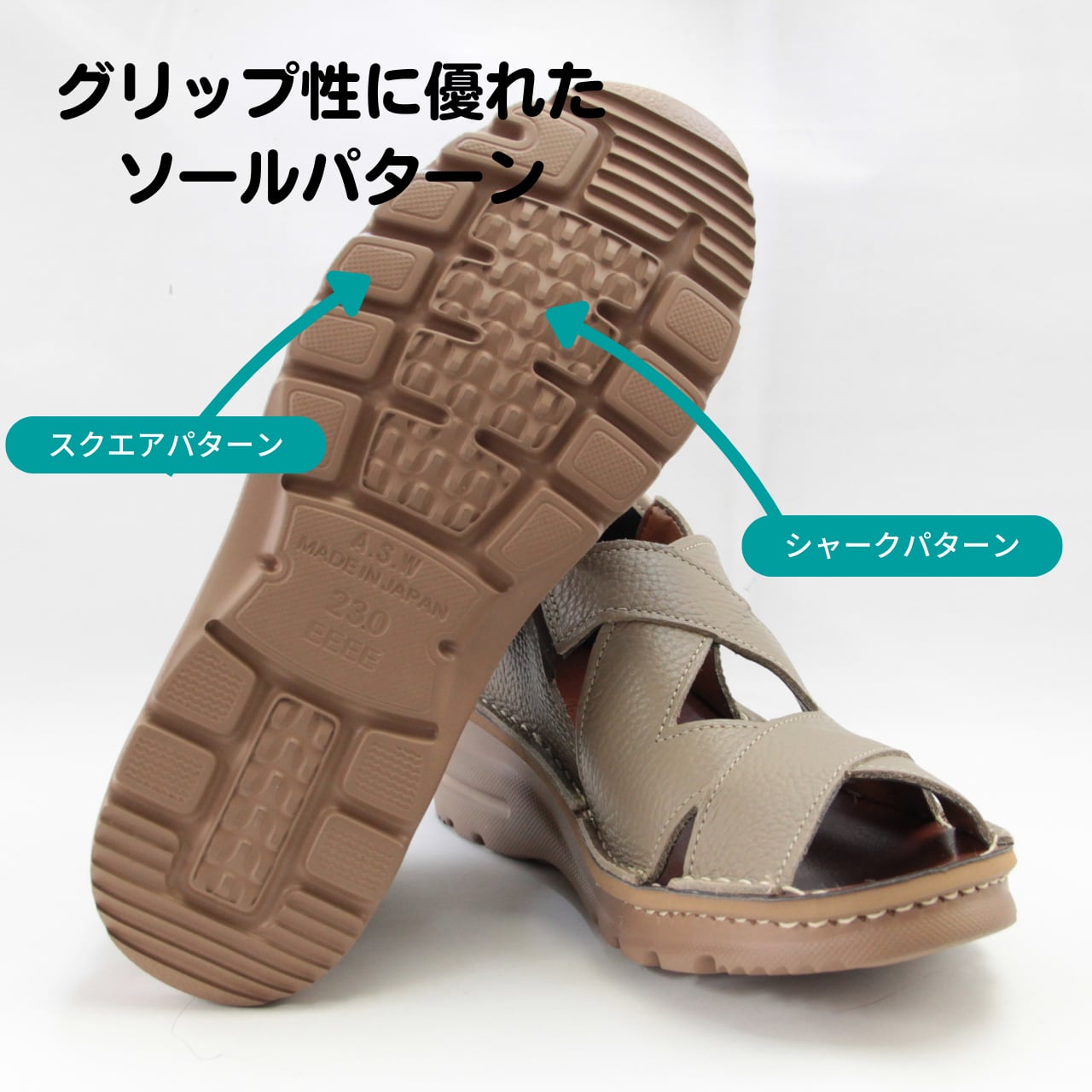 サンダルタイプなので、春から秋までお履きいただけるアイテムです。